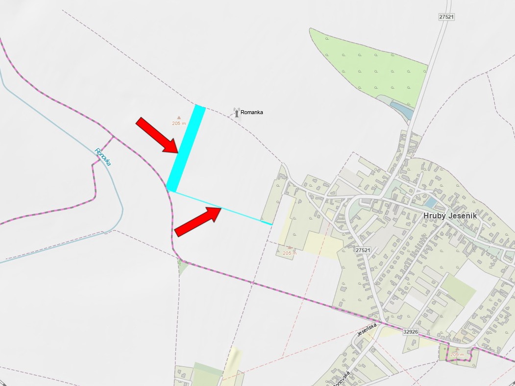 Spoluvlastnické podíly o velikosti ideální 1/32 na pozemku o výměře 5.037 m2 v k.ú. Oskořínek vedený jako orná půda, spoluvlastnický podíl o velikosti 1/400 na pozemku o výměře 176 m2 v k. ú. Hrubý Jeseník vedený jako ostatní plocha (komunikace) , spoluvlastnický podíl o velikosti 1/32 na pozemku o výměře 14.152 m2 v k.ú. Hrubý Jeseník vedený jako orná půda a spoluvlastnický podíl o velikosti 1/400 na pozemcích o výměře 1.261 m2 v k.ú. Hrubý Jeseník vedených jako orná půda. Pozemky netvoří souvislý celek, jsou situované jednotlivě. Pozemky jsou dle dostupných informací obhospodařovány, avšak insolvenční správce ani zprostředkovatel nemá k dispozici nájemní resp. pachtovní smlouvy.